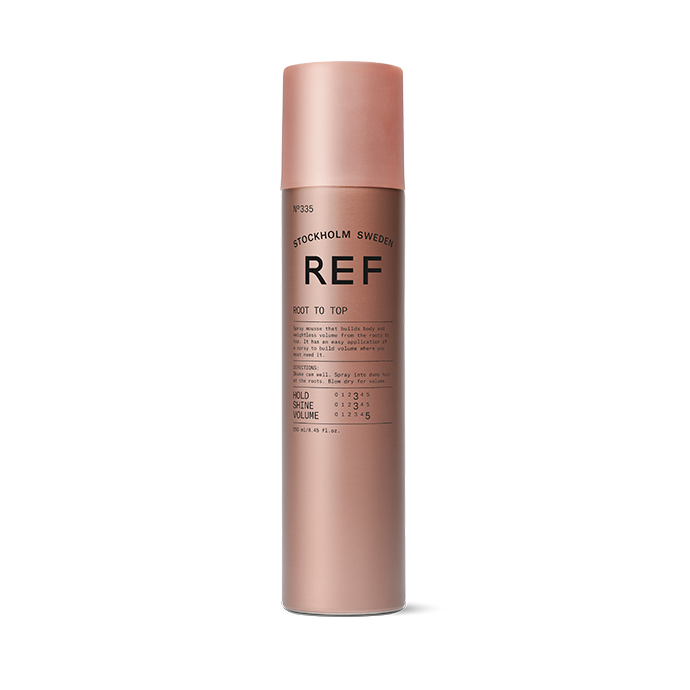 Root to Top 335 es una mousse en spray de la marca sueca REF, diseñada para aportar volumen desde la raíz hasta las puntas sin apelmazar el cabello. Su innovador formato en aerosol permite una aplicación precisa, ideal para quienes buscan elevar el cabello desde la base y lograr un peinado con cuerpo y movimiento natural.